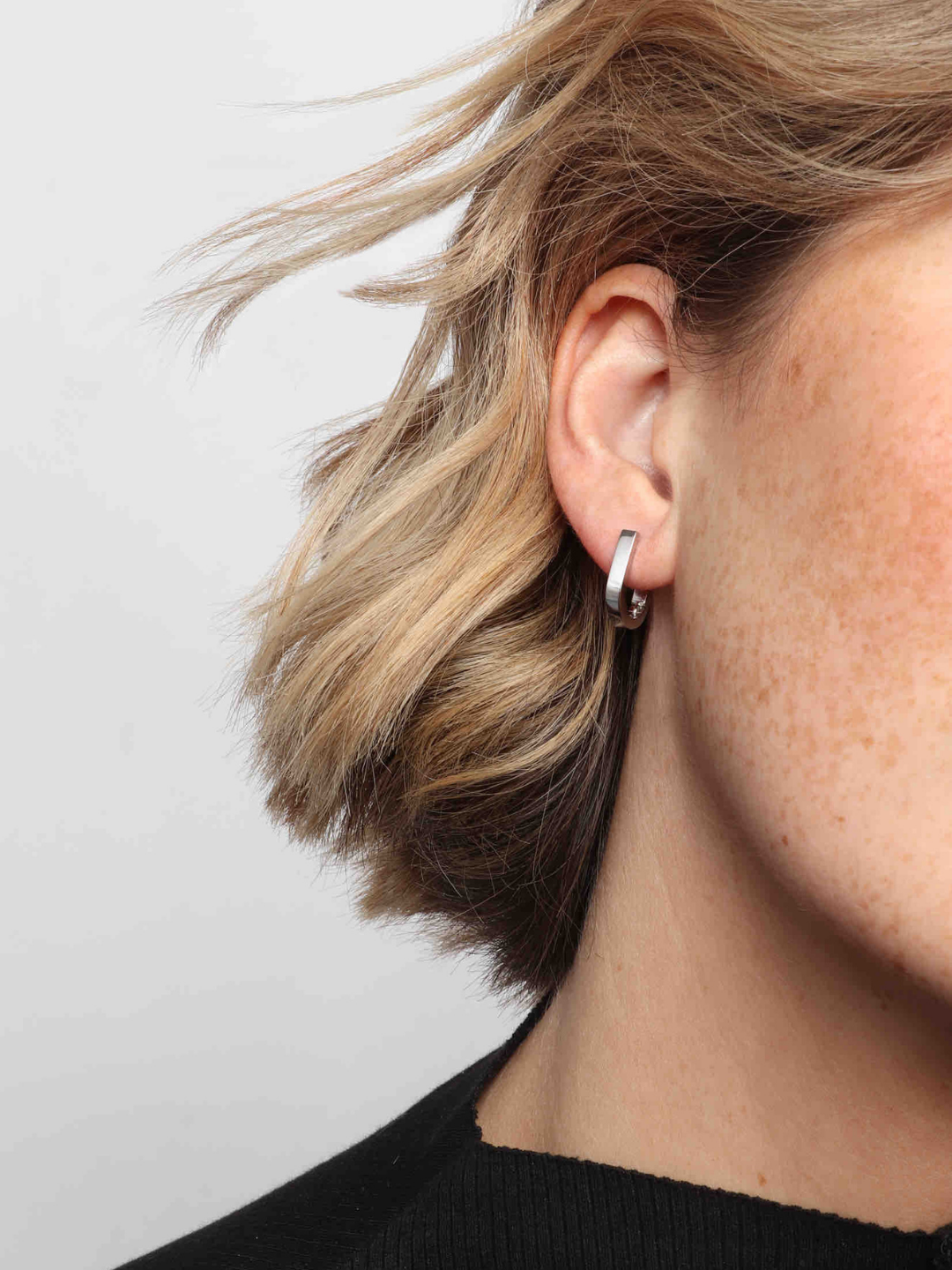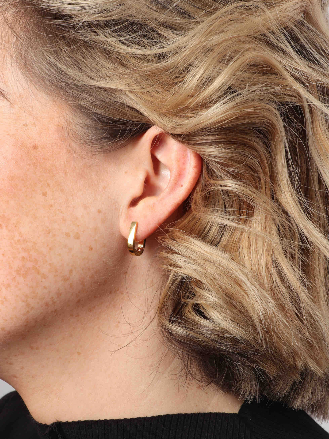 These geometric U-shaped huggies feature a sleek and modern design, enhanced by an invisible click hoop closure for a seamless look. Perfect for everyday wear, they add a stylish and contemporary touch to any outfit while ensuring a secure and comfortable fit.